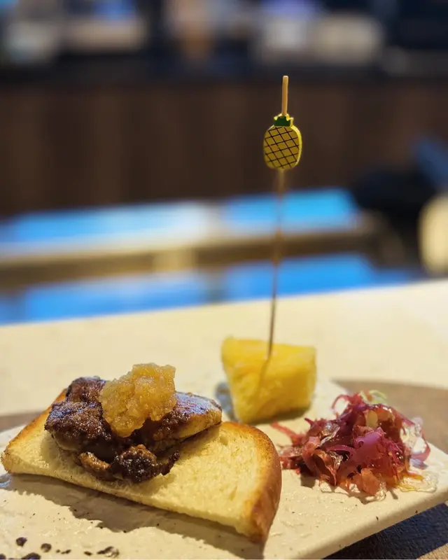 鵝肝油脂味香濃,並不會羶臭,口感柔軟,加上 Topping 既蘋果蓉及伴碟凍菠蘿正好帶走口腔中多餘既油膩感 😋