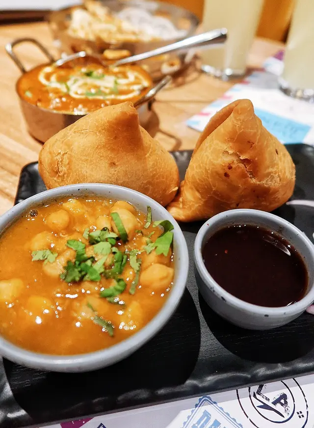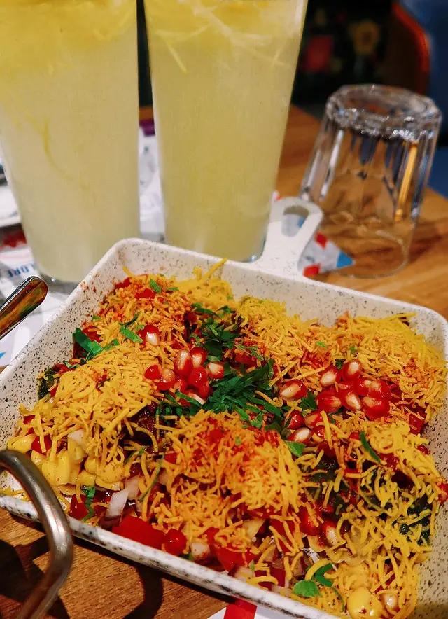 先點了沙律及小食作開胃菜,「Punjabi Samosa」外皮酥脆金黃,內餡是溫熱的香料馬鈴薯,佐以清新醬料,口感層次分明。「Crispy Corn Basket」甜玉米酥炸香脆,調味料配石榴籽,微辛中滲出酸香