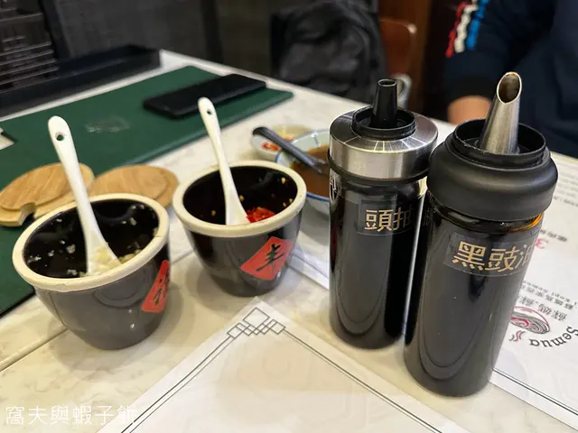 一邊喝湯,一邊跟紙上的指示調醬,將蒜蓉、辣椒、黑豉油和頭抽放在小碟中拌勻,留待吃豬腳時蘸的。