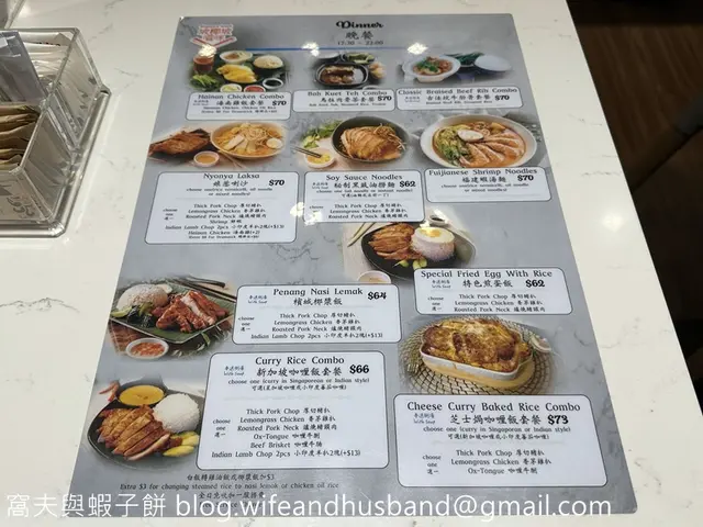 晚餐由下午五時三十分開始提供,選擇很多,海南雞飯、肉骨茶、喇沙、椰漿飯和咖喱飯等都很吸引。