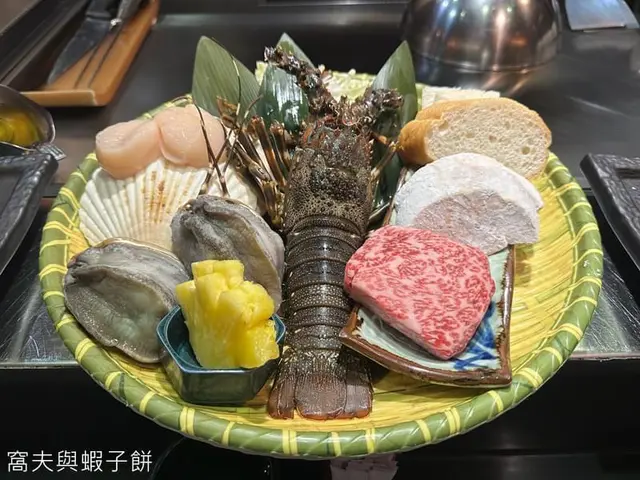吃沙律期間,鐵板燒的食材送來了,鮮活的龍蝦和鮑魚還在動呢。