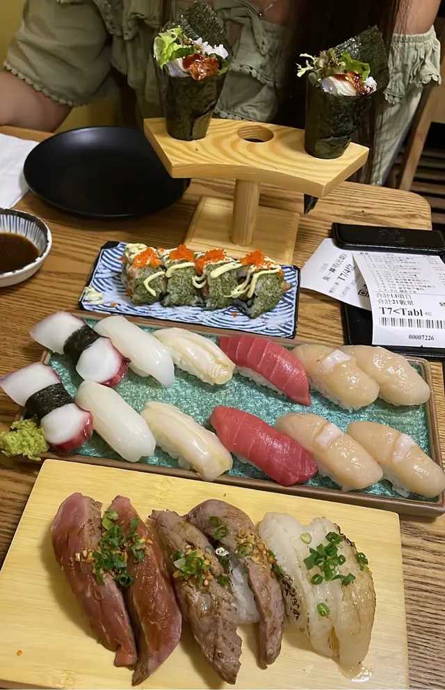 首先,三文魚腩刺身非常不新鮮,只係有一陣腥味。魷魚壽司直程起渣,咬都咬唔斷。到軟殼蟹卷,份量相比幾年前縮水左最少三份一,入面勁少軟殼蟹(有一兩舊直程無),仲有啲紫菜碎係外面??總之成件事係好唔夾。