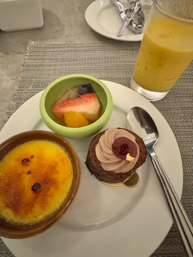 甜品亦用心製造,一絲不苟。焦糖燉蛋外表糖衣香脆,蛋漿味濃滑溜。楊枝甘露簡直是人間滋味,絕對值得一試。即造梳乎厘軟滑微甜,帶來幸福感。其他甜品亦手功精緻,味道不俗。