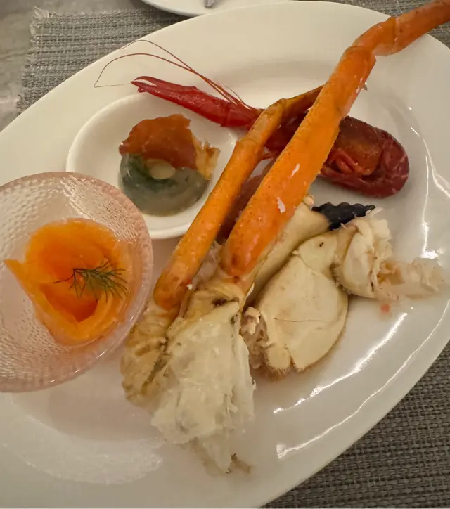 海鮮冷盤亦質素佳,煙三文魚滑不溜口;長腳蟹充滿海水味,新鮮而肉質一梳梳的。蟹鉗啖啖肉,口感極佳,使人滿足;小龍蝦肉質煙韌。