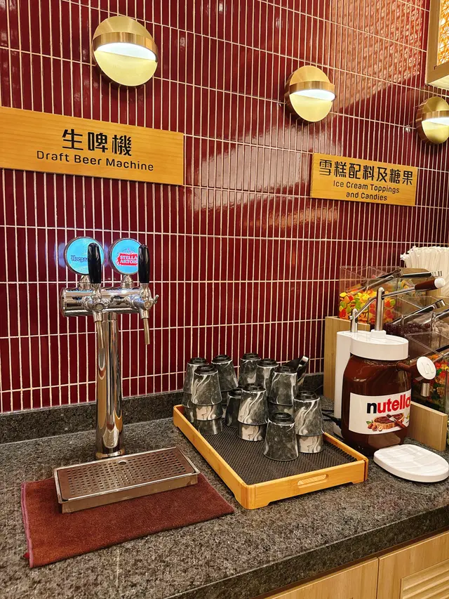 當然唔少得飲品任飲,當中仲包括日本嘅果汁酒,仲有生啤,喺生啤機隔離仲發現咗nuttella 醬機,加落去軟雪糕度食超正