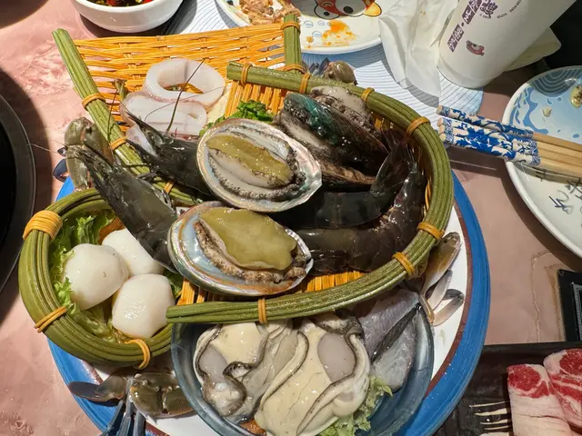 火鍋一開始會上盤海鮮,海鮮係任食的,不過冇寫喺火鍋任點menu度,因為海鮮係每晚不同的,要睇返當晚係咩海鮮,呢個海鮮盤有嘅海鮮都係可以任食,叫店員過嚟落單就得。