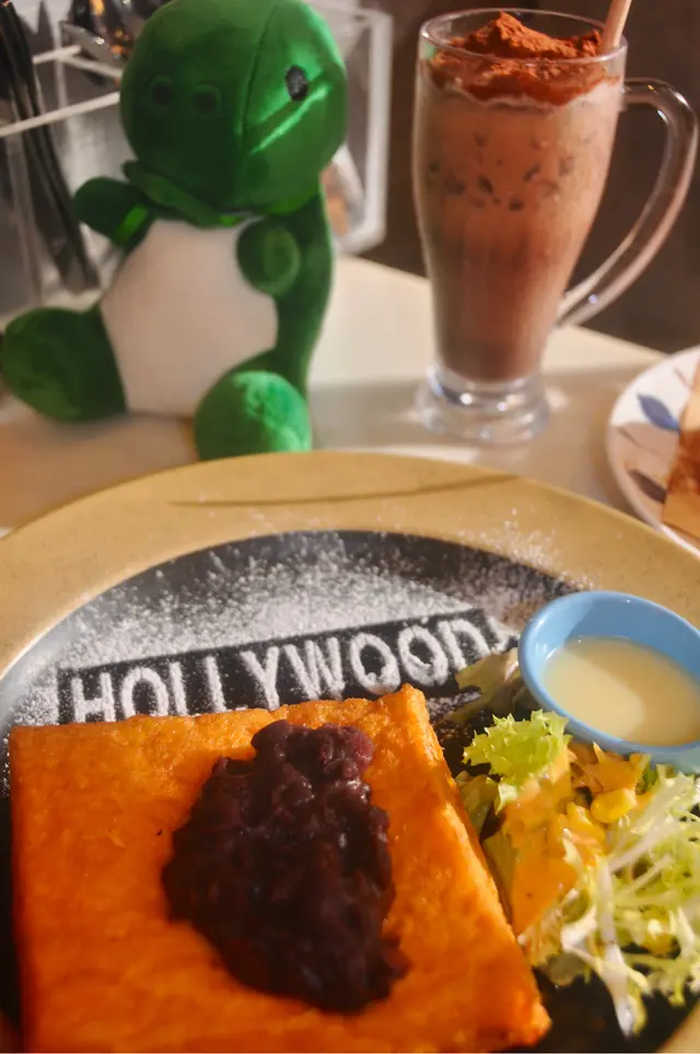 在多士上层堆满一山红豆(不会很甜、都是沙沙的口感