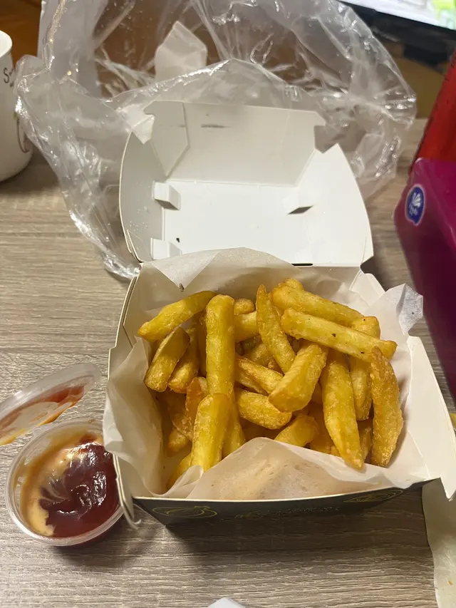 雖然係細薯條,但都好大包,份量一啲都唔少,但可能因為拎返屋企要啲時間,所以有啲淋左,吾脆,薯條係粗薯條,但冇調味,鹽都冇粒,味道一般,好彩有附上茄汁溝千島醬。