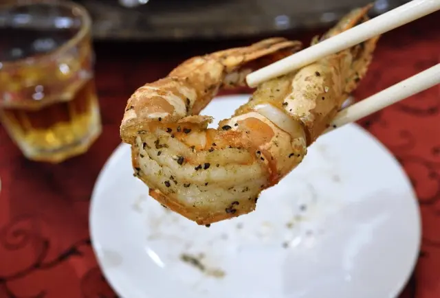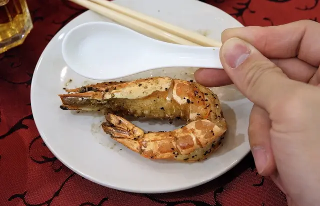 Step說得是大蝦,當然SIZE並不算少,將蝦放在小碟上可以發現這只大蝦足以佔了小碟的一半位置;大蝦上沾滿了不少黑胡椒,看下去已經可以感受到其辣味;大廚也巧妙地將大蝦的蝦殼開邊切開,方便客人食用…