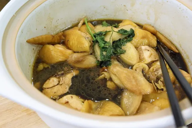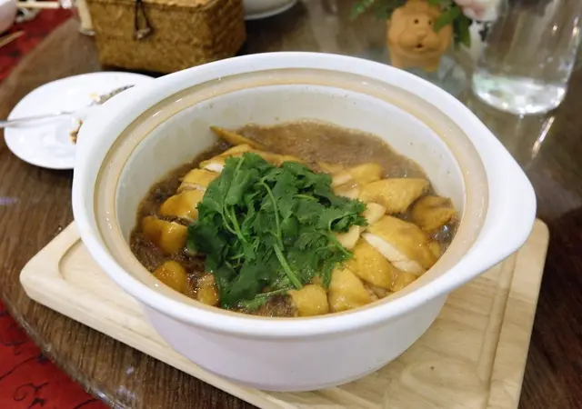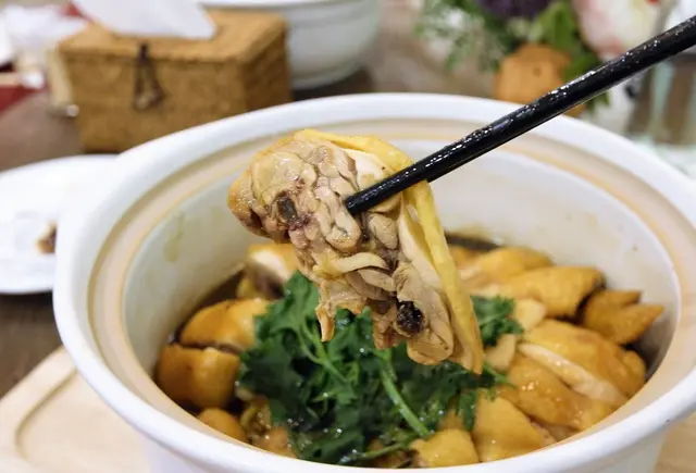 這個雞用上砂煲將適量的甜醋和鮮雞一起烹調,令雞肉帶有一點甜醋的味道,而又不失雞的鮮味…