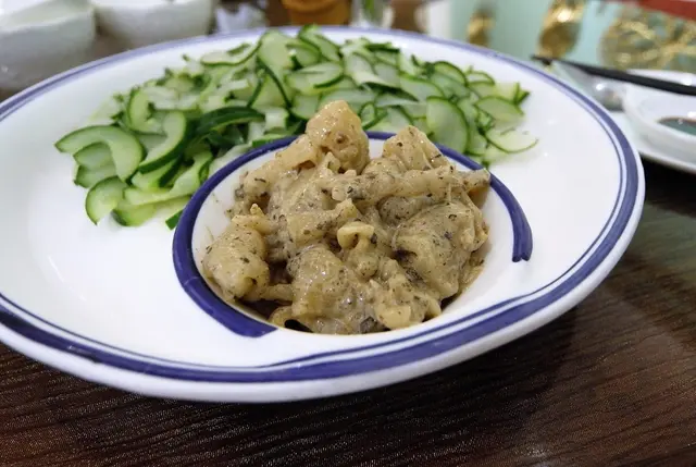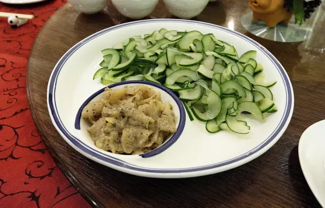 花膠爽滑軟稔,咀嚼時帶點黏稠膠質,口感一流;多吃時因胡麻醬令口腔變得有點膩感,就在這時要配合青瓜片一起食用;大廚已經將青瓜片用鹽水灼熟了,入口時帶點鹹味,吃後可以中和口腔的負擔,妙極了;也因為青瓜片帶點味道,就算只吃青瓜也是沒有問題,Step吃後也明白為何青瓜片的份量是這麼多呢…