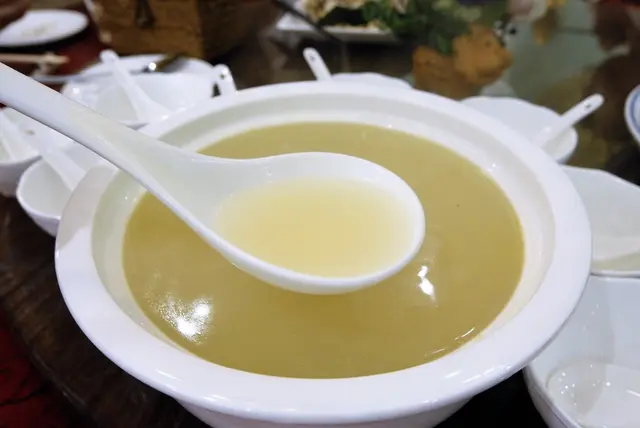 Waiter送上來的一大湯碗的湯,湯色奶白得來又帶點金黃,通常用雞煲熬出來的湯水大多會有一層薄薄的反光金黃色雞油在湯面上浮著,但這個Dreamix廚的淮山杞子響螺雞湯卻沒有發現這個現像,相信大廚已經將雞油完全弄走再上桌給客人享用,這樣也令客人飲用時感覺健康一點…