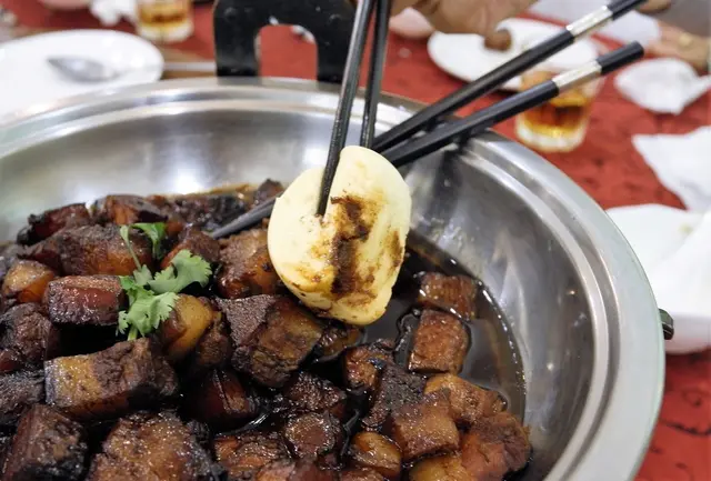 雖然是層次分明的五花腩,但咀嚼時脂肪卻不覺得油膩,相反脂肪的口感卻是煙韌帶點膠質,肉質鬆軟化綿,完全令Step和娘子對這味昌媽媽炆豬肉另眼相看;長輩看到我們吃得開心滋味,也忍不住拿起筷子品嚐一返,試後各大長輩皆讚這個豬肉一點也不油膩,多吃也沒有令喉嚨有過重的負擔