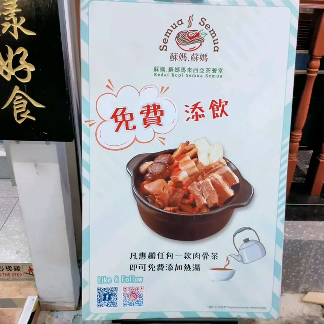 [飲食] 蘇媽蘇媽馬來西亞茶餐室(尖沙咀)♥濃厚馬拉菜 肉骨茶免費添飲 sweetssunday等级42024-03-1153 浏览 关注 我同媽媽來到尖沙咀,上網尋找那裡有好味,「蘇媽蘇媽馬來西亞茶餐室」一間正宗馬來西亞菜,無論在食物款式、質素及環境各方面很有特色。百吉爹肉骨茶(豬腳彎)食落非常足料,豬腳,豆卜及金菇,豬腳煮得軟嫩,肉骨茶湯底濃郁,加入藥材同香料十分獨特,仲可以免費添飲。高佬麵配雞扒入面有醬油撈麵和雞扒,撈麵彈牙,雞扒份量大件,煎得香脆,加上炸魚仔、花生和參巴醬,濃厚馬拉色彩,讓人回味無窮。椰香咖央多士多士夾着椰香牛油,非常鬆脆,充滿優雅不膩的滋味。似水榴槤榴槤味香濃,帶出絲絲榴槤味在心頭。蘇媽蘇媽馬來西亞茶餐室(尖沙咀)地址:尖沙咀加連威老道10號加威中心地舖以上食记乃用户个人意见 , 并不代表OpenRice之观点。赞好分享[飲食] 蘇媽蘇媽馬來西亞茶餐室(尖沙咀)♥濃厚馬拉菜 肉骨茶免費添飲 蘇媽.蘇媽馬來西亞茶餐室 https://s.openrice.com/QrLT0W9LH00检举 张贴 评分4味道4环境4服务4卫生4抵食用餐日期2024-03-06用餐途径堂食用餐时段晚餐