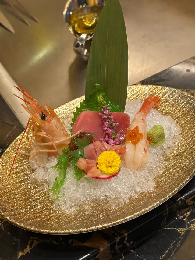 含三款時令刺身✨赤牡丹肉質晶瑩,鮮甜彈牙🦐赤貝爽脆帶淡淡海潮香氣🐚拖羅油花細密,充滿魚脂香氣🤤