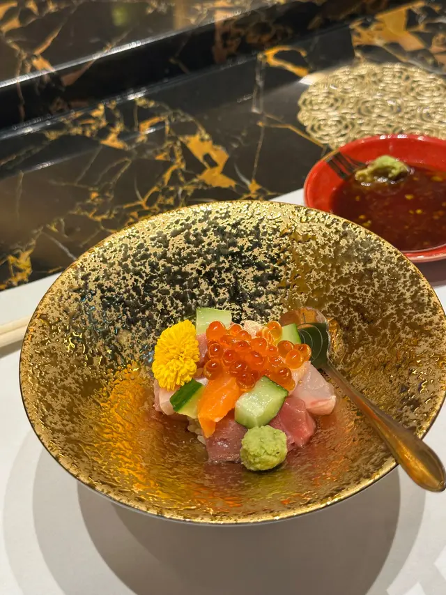 迷你魚生飯鋪滿三文魚、吞拿魚、白身魚、青瓜同三文魚籽💕每一匙都食到魚脂、醋飯與魚籽爆汁的層次感