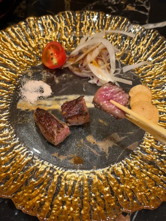 和牛壓軸登場🥩油花分佈均勻,煎至五成熟啱啱好👍🏻入口即化,油脂香濃卻不膩😚可按喜好配玫瑰鹽、蒜片或洋蔥沙律一齊享用💖