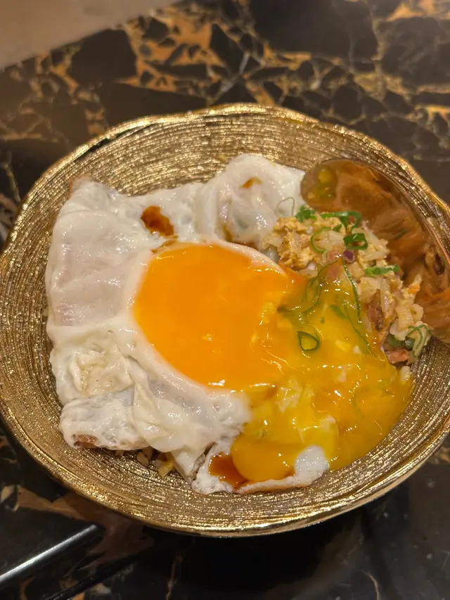炒飯粒粒分明,蒜香濃郁,加上香脆煙肉提味🥓最吸睛係面層一隻半熟太陽蛋,蛋黃輕輕劃開流心溢出,與炒飯混合後更香更滑🤪再配埋爽脆炒什菜,加少少特製蒜蓉醬汁提味🧄