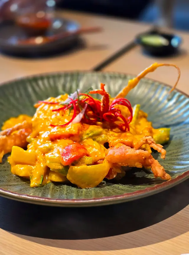 另一道期待的泰式咖喱軟殼龍蝦 HK$388(潑水節菜式),因為已好一段時間沒吃軟殼龍蝦了,一碟包含四隻軟殼龍蝦剛剛好!首先咖喱口味溫和不辣,入口啖啖微脆軟殼、嫩彈龍蝦肉,配合混上雞蛋綿稠的咖喱汁,相信小朋友也會喜歡上!
