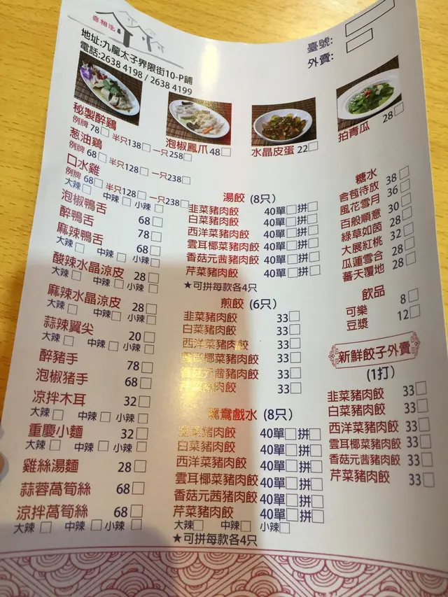 今日過開黎就去選擇黎食下。呢度主要做外賣,堂食既話就要坐店鋪外面既露天雅座。我地今晚黎到坐低就叫左一個前菜、兩款餃子、一款肉類同兩款飲品。