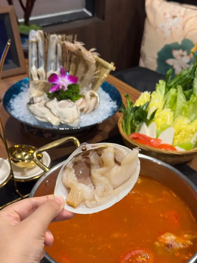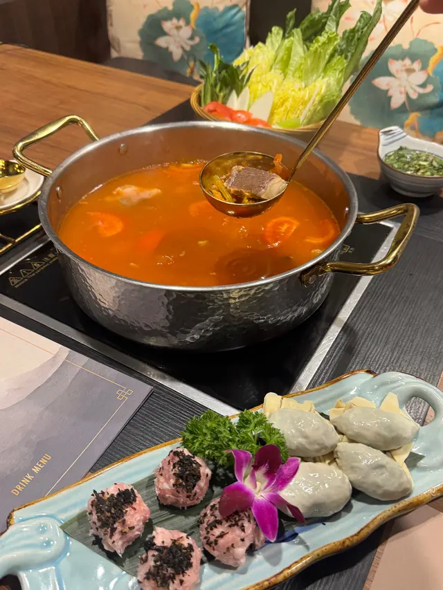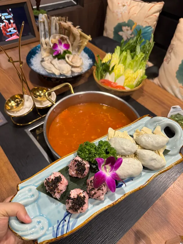 已經包埋湯底,海鮮、蔬菜、手工餃子和手工丸