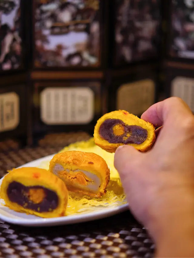 我地仲試咗兩款口味月餅,豆沙同綠豆蓉