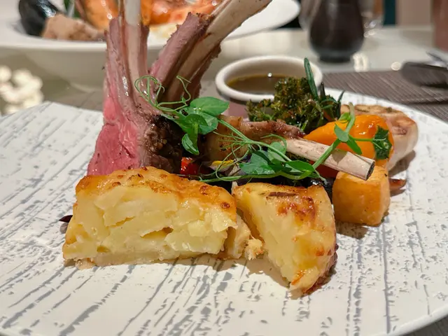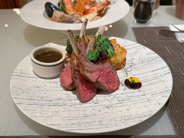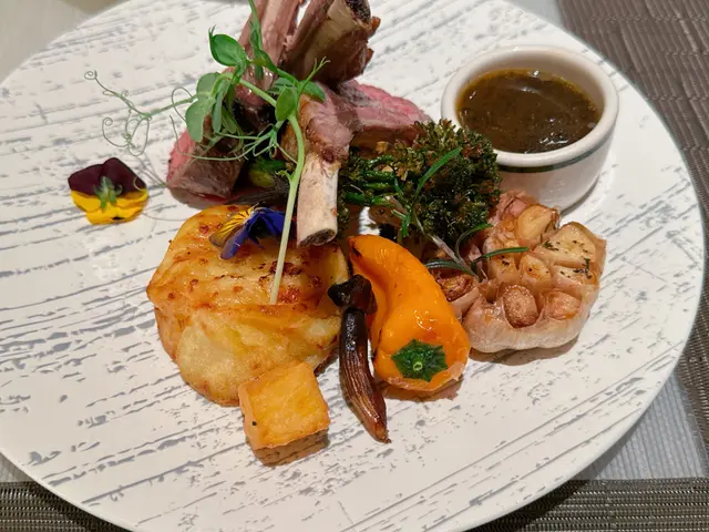 羊架肉味濃厚香甜而不羶,肉質細緻幼嫩,粉紅色澤相當吸引🤩伴碟有芝士薯仔、烤西蘭花、烤蒜等,擺盤精緻款式多👍🏻
