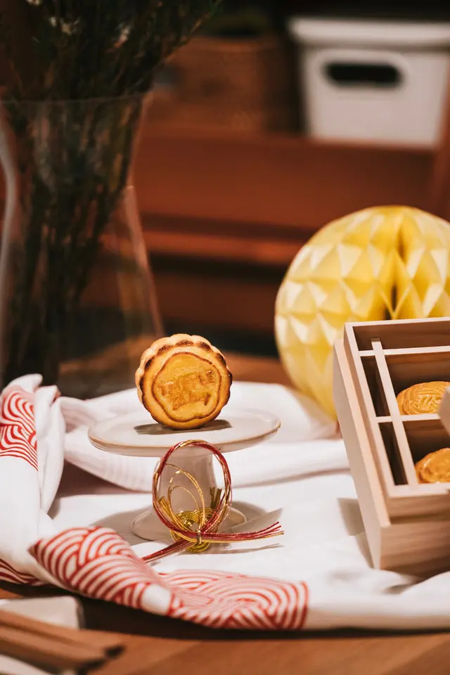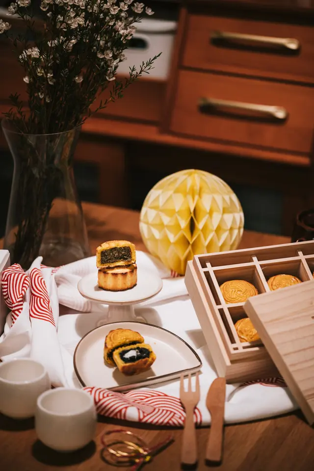 木盒內有黑松露月餅及黑芝麻麻糬月餅各3件.將帶有濃郁香氣嘅黑松露配上酥脆充滿牛油香嘅月餅,味道相當有驚喜.黑芝麻亦好重芝麻香,再加Q韌綿糯嘅麻糬,相當滿足!