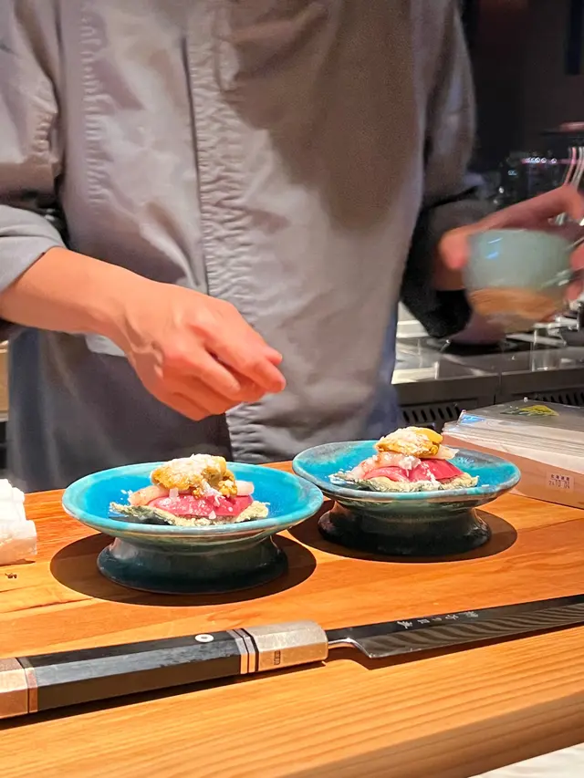 招牌菜-海膽牡丹虾toro紫菜天妇罗