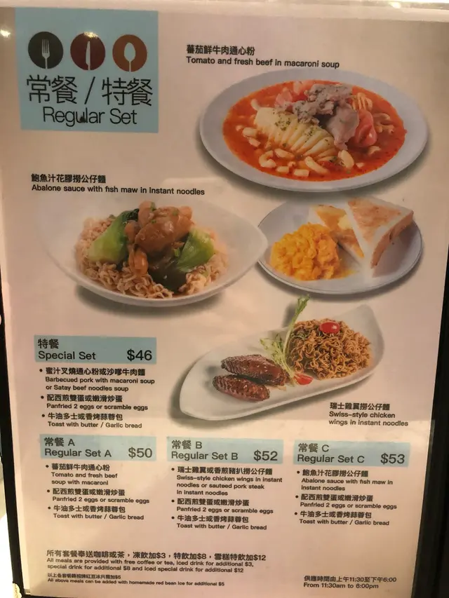 香港又一冰室 左北等级42019-05-26202 浏览 关注 今日同同事一齊出左銅鑼灣做野,做完野都要食番個Lunch,就選擇了入去紅磡冰室試試入到去見到好多人都食撈麵,我同同事都直接睇左落去撈麵系統了,但睇番常餐/特餐其實都有不少的選擇如:叉燒通粉、沙嗲牛肉麵、鮑魚汁花膠撈公仔麵等等......香煎豬扒撈公仔麵 - $52豬扒比較厚身,十分香口且口感十足。瑞士雞翼撈公仔麵 - $52瑞士雞翼很味道適中,不會太咸,但肉質比較‘鞋口’。2個套餐都跟餐配上,多士十分香口,蒜味非常奶茶、咖啡味道比較澀口,且不是太滑。以上食记乃用户个人意见 , 并不代表OpenRice之观点。赞好分享香港又一冰室 紅磡冰室 https://s.openrice.com/QrLT0vYiq00检举 张贴 评分3味道3环境3服务3卫生3抵食用餐日期2019-05-17用餐途径堂食