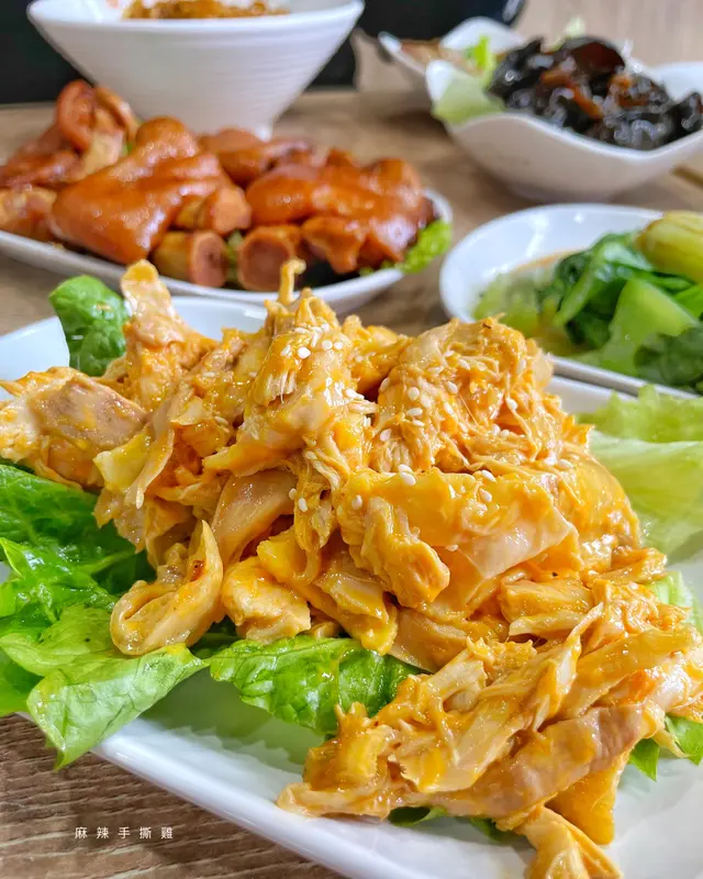 招牌菜之一的手撕雞 可選鹽焗/麻辣 or 鴛鴦