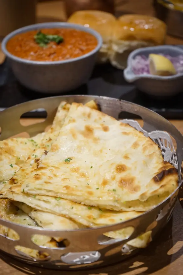 熱辣辣嘅Naan面包包住濃郁芝士同香料,拉絲效果滿分!芝士控絕對唔可以錯過,食完成個人都幸福晒