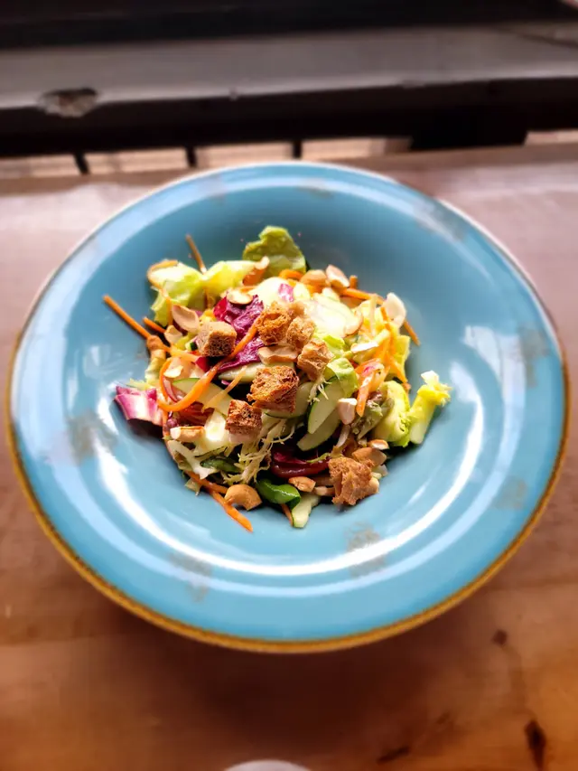 有腰果粒、沙律菜塊、青瓜片、胡蘿蔔絲⋯⋯