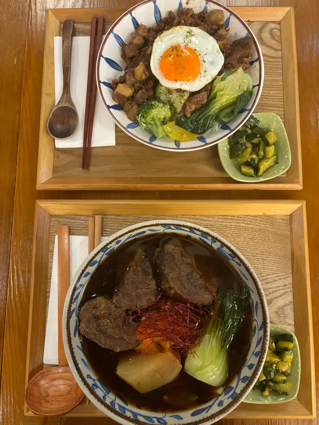 牛肉麵是台灣經典必試🙌🏻🙌🏻湯底味道濃厚,獨家秘製的紅燒作湯頭, 有超厚切牛腱肉厚切到誇張,但居然煮得超軟嫩!筋膜彈牙又不膩,搭配吸滿湯汁的蘿蔔和翠綠小棠菜,湯底清甜,整碗面非常有水準❣️❣️