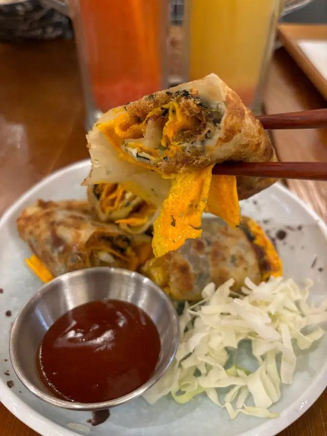 蛋餅煎到好香脆,裡面超多料,趁熱吃一口就feel到很台灣夜市的味道👅