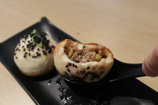 生煎胡椒包外皮香脆,胡椒味非常突出。入面豬肉餡料相當新鮮,另外亦混入京葱,口感更豐富。