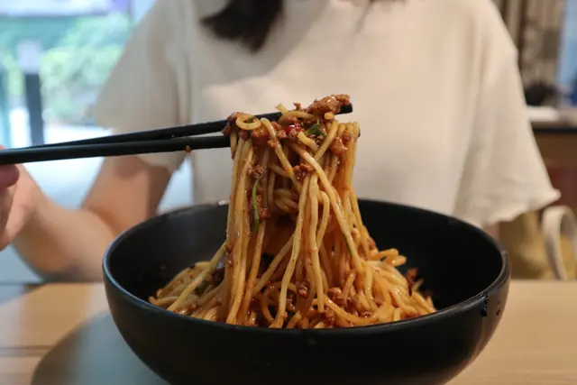 醬汁由辣油、鎮江醋、甜豉油同麻醬調製而成,肉燥份量超多,味道辣中帶甜,輕盈而不失惹味。