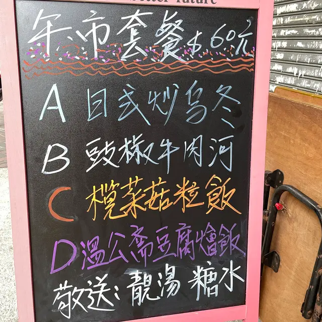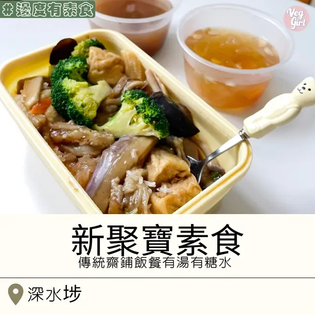 新聚寶素食有這個方便套餐,有飯有湯有糖水。