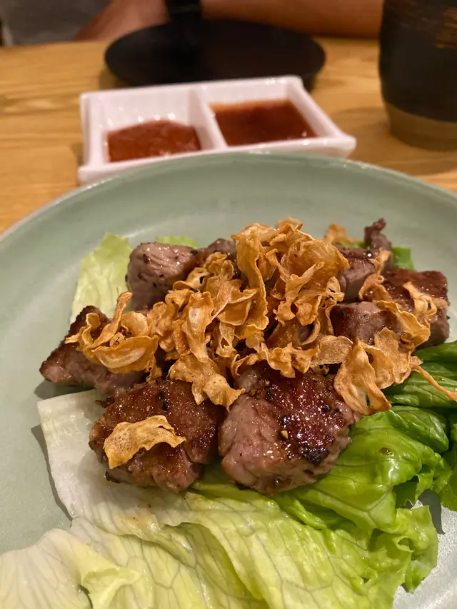 牛柳粒煎得恰到好處,肉質軟嫩,蒜片嘅香味滲透入肉中,令整道菜更添風味。鐵板熱度適中,保持住肉嘅鮮嫩感,非常美味。