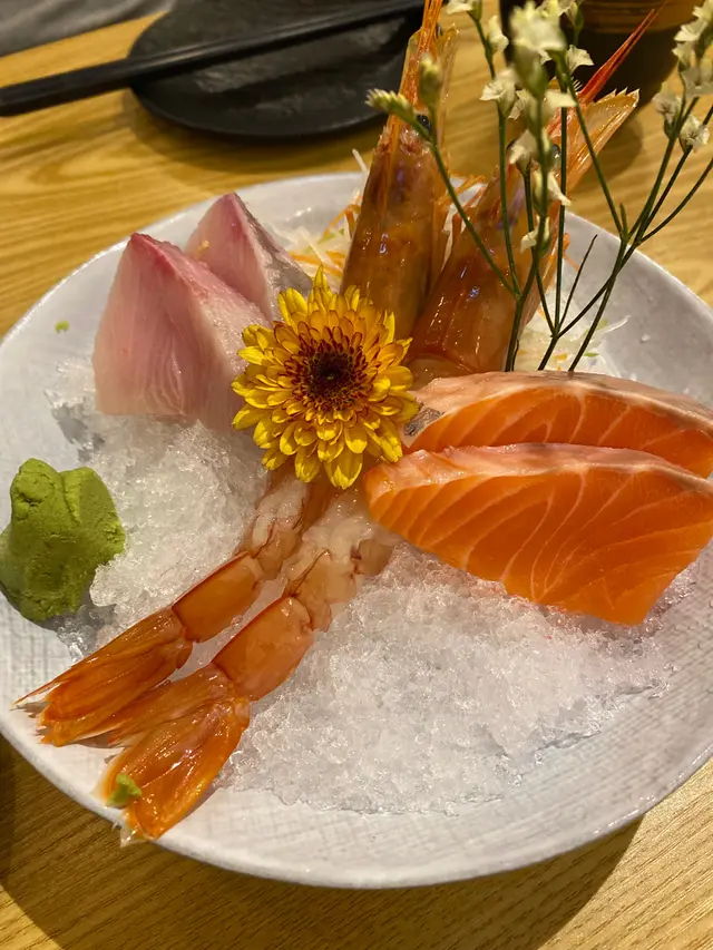 刺身三點真係非常新鮮。三文魚肉質滑嫩,油甘魚則有一種獨特嘅甜味,大蝦肉質緊實。每一口都可以感受到海洋嘅鮮味,搭配少量嘅醬油,味道更上一層樓。