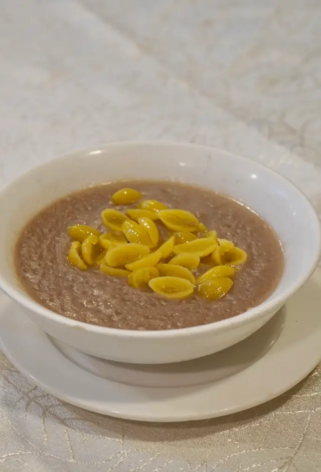 【福果芋泥】这一口热气腾腾的芋泥就是碳水与脂肪的快乐叠加。朦胧的粉紫色之下是幼滑细腻的质地,膏一样的厚实,舀起来的瞬间感受到明显阻力。芋香浓郁过瘾,比奶茶里的芋泥多了一股神一样的猪油香气,和着滚烫的温度扑鼻而来,回味悠长而立体。