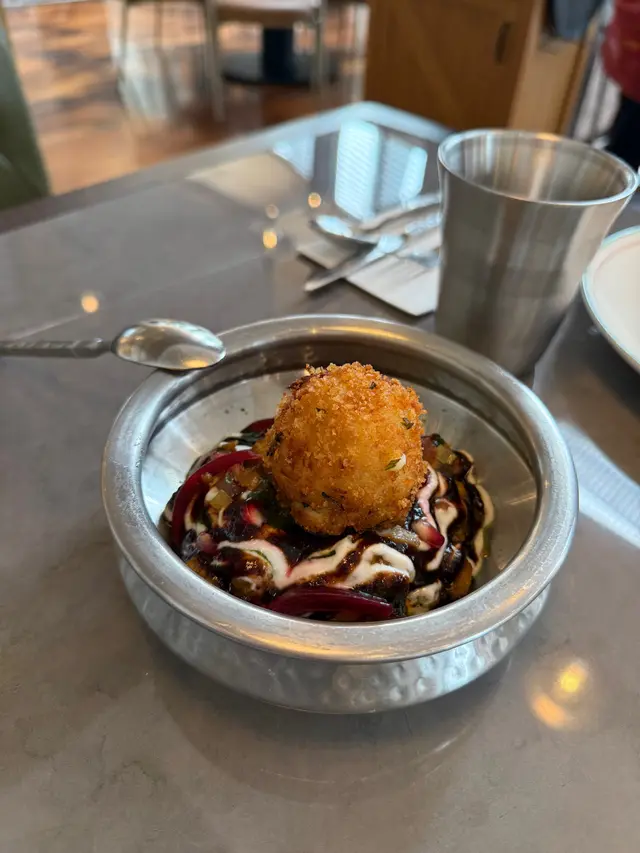 香港icc印度英式菜 vikkichoiiii等级42025-11-18109 浏览 关注 这里的菜,有种恰到好处的融合感。开场的Mango Lassi,是永远不会出错的经典,浓稠顺滑,酸甜解暑。接着的Arancini Tikka Chaat让人眼前一亮,炸得香脆的饭球,搭配酸酸的酱汁和鹰嘴豆,口感丰富又开胃。招牌的辣鸡翅,确实名不虚传,香辣入味,是那种会让人想一再回味的小食。主菜我选择了Nagpuri Fish Curry,咖喱汁浓郁醇厚,鱼肉浸润其中,配上带着淡淡香气的藏红花饭,每一口都是满足。而最让我惊喜的,是那道黑松露芝士馕——热乎乎的馕饼撕开,里面是融化的芝士与黑松露的独特香气,单吃或者蘸咖喱都堪称一绝。整顿饭的收尾,交给了Sticky Toffee Pudding。它口感扎实绵密,甜得温暖而不腻,为这顿饭画上了一个非常完满的句号。以上食记乃用户个人意见 , 并不代表OpenRice之观点。赞好分享香港icc印度英式菜 Sepoy Mess https://s.openrice.com/QrLT08q5V00检举 张贴 评分5味道5环境5服务5卫生5抵食用餐途径堂食