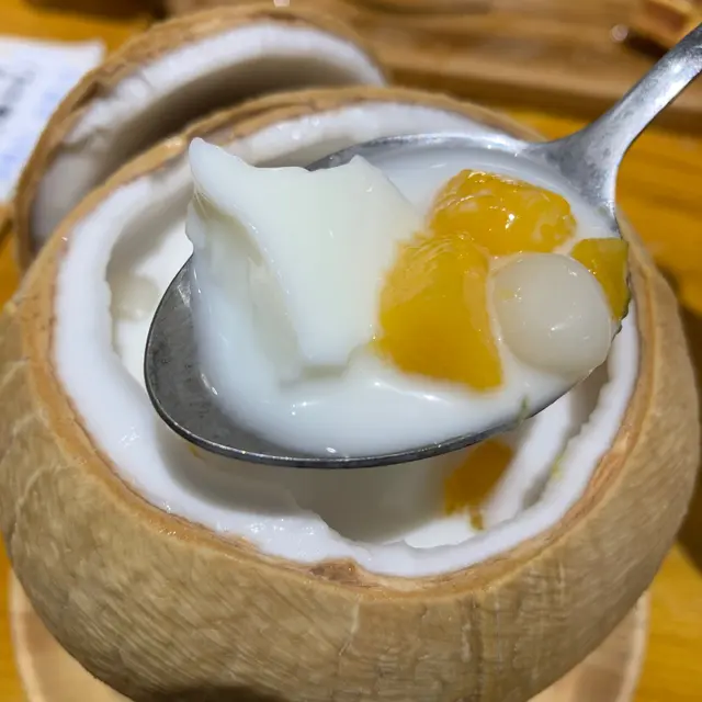 反而椰皇真心好味,開頭我怕佢有青味,但食落芒果加埋椰皇奶味甜度嘅配搭好調和,成件事好夾好襯,入面嘅小丸子唔會因凍食變硬,仲好煙韌又唔會粉,食到最後刮埋殼入面d肉食,食清光!正
