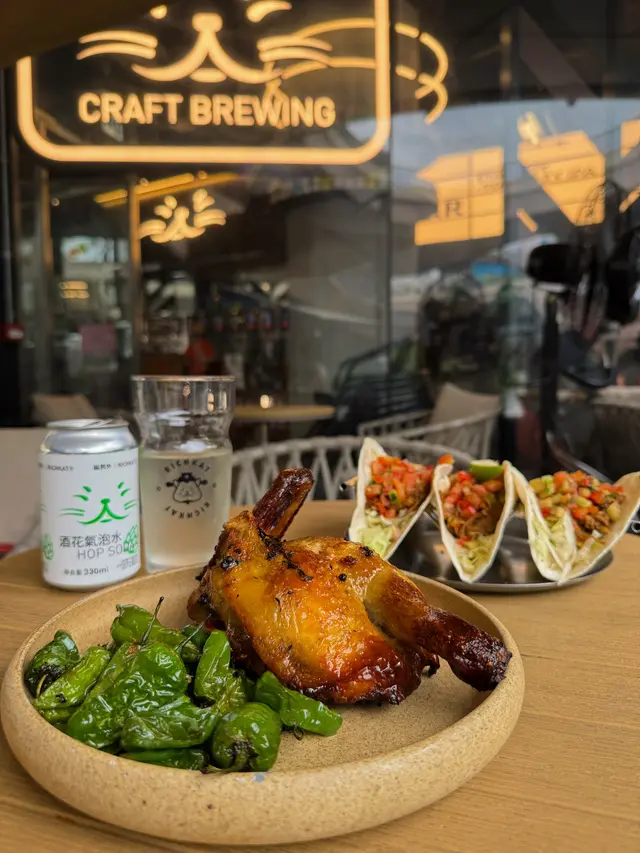 🍺馬鞍山 「貓員外精釀酒館 」中西fusion餐廳 AyumiPeggyHo等级42025-10-31160 瀏覽 關注 今日嚟到「貓員外GO PARK 西沙店」,獨家供應中西合璧創意料理,除咗食物同飲品之外,仲有大螢幕睇⚽️比賽、飛鏢🎯、桌球🎱,而且仲係寵物友善餐廳。🐓貓員外“星仔”啤酒醉烤三黃雞 $178 送🫧酒花氣泡水~ 烤雞以啤酒醃製,外皮香脆、肉質嫩滑,啤酒香氣滲入雞肉 。而伴碟嘅🌶️青辣椒,都幾辣下,食得辣嘅一定要試!🍕🍄🟫黑松露雜菌薄餅(素)$168 送🫧氣泡水~ ✨必點「貓員外」pizza 獨有拿波里餅底,用上大型烤爐,廚師新鮮即做,pizza熱辣辣出爐,一件接一件,食唔停口。🌮手撕豬肉墨西哥玉米卷 $90~手撕豬肉特別惹味,加上開胃嘅蕃茄粒、青瓜粒、洋蔥粒、青紅椒、生菜,美味又開胃,口感豐富。3以上食評乃用戶個人意見 , 並不代表OpenRice之觀點。讚好分享🍺馬鞍山 「貓員外精釀酒館 」中西fusion餐廳 貓員外精釀酒館 https://s.openrice.com/QrLT0TGLV00檢舉 張貼 評分5味道5環境5服務5衛生5抵食用餐日期2025-10-28用餐途徑堂食用餐時段午餐
