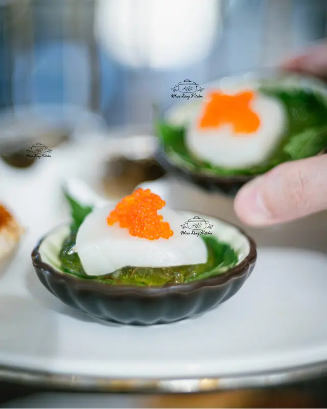 爽彈的磯煮鮑魚蘸上惹味的松葉蟹膏醬,綿延海洋風味。