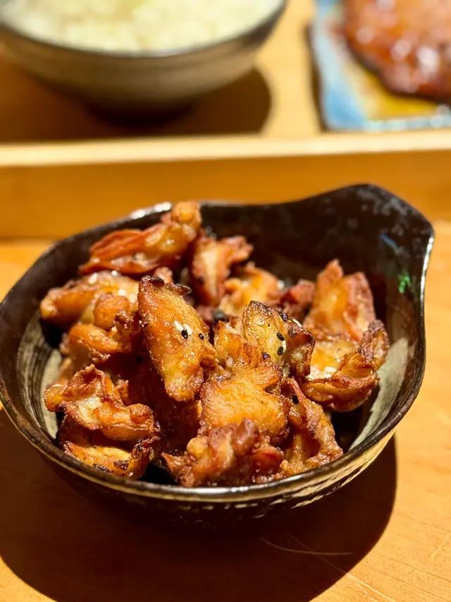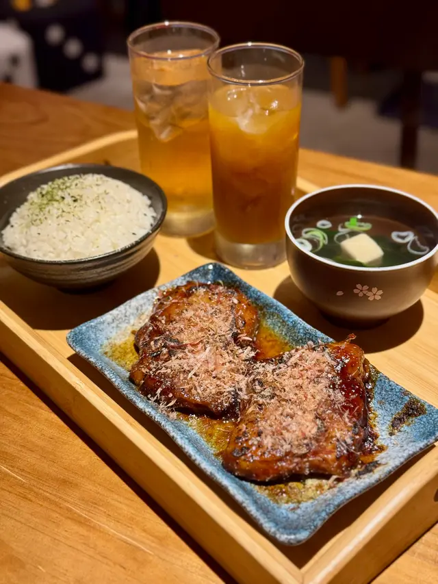 性價比高,有兩塊雞肉,口感嫩滑,定食配海帶味噌湯和白飯,不足百元可在居酒屋吃一頓,超值