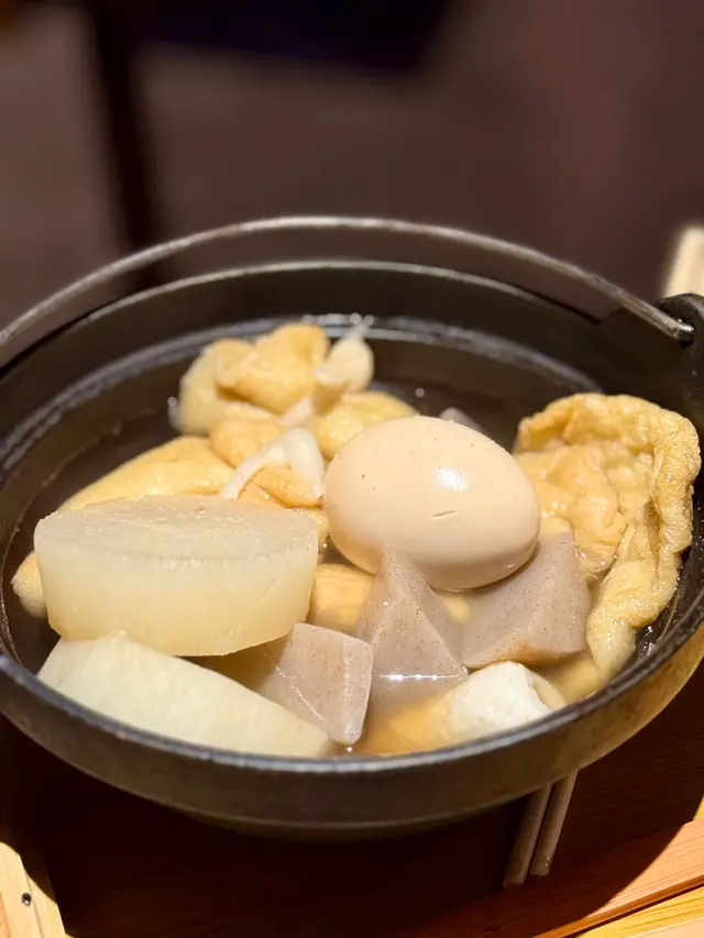 有年糕福袋、油揚、蒟蒻和雞蛋等,配上淡淡的柴魚昆布高湯