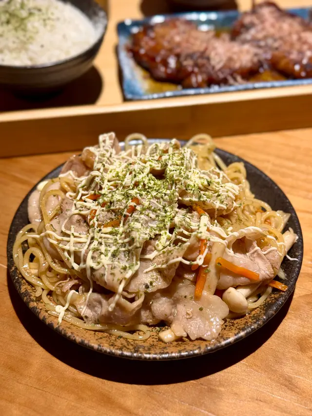 豬肉份量大方,覆蓋整個炒麵,醬汁是經典大阪燒風味,沾了美奶滋的拉麵軟硬適中