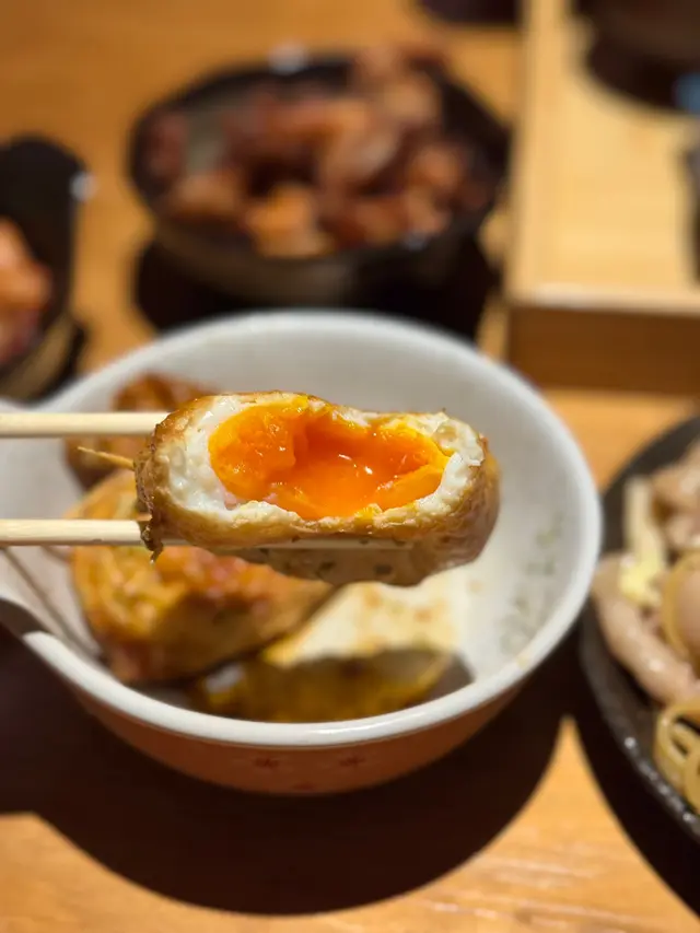 精緻手工小食,將福袋拆開放入雞蛋,煮至剛好流心,外層是腐皮口感,非常合拍,好吃