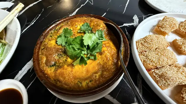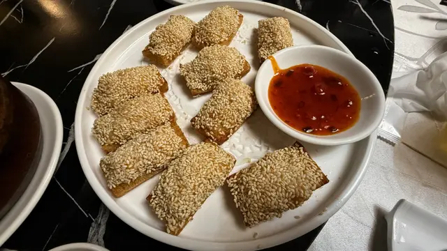 蝦膠滿滿嘅蝦多士,面頭鋪滿芝麻,能做到多士唔油膩,跟甜酸汁好匹配,值得一試。